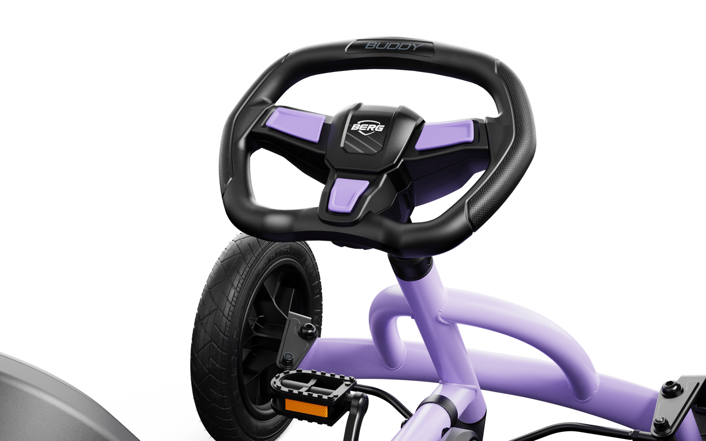 Mit dem BERG Buddy Gokart stiehlst du in der Nachbarschaft die Show. Du sitzt bequem im geräumigen Schalensitz, während das Lenkrad dir perfekten Halt bietet. Außerdem ist das Lenkrad für die BERG Soundbox vorbereitet, die standardmäßig beim BERG Buddy Cross mitgeliefert wird. Egal, welche Ausführung du wählst, mit dem Buddy bist du zweifellos der coolste Fahrer auf der Straße!